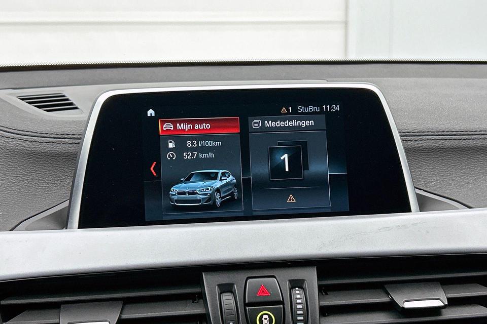 Mocht zich een probleem voordoen, dan krijgt u via remote services op uw smartphone te zien wat er precies aan de hand is, waar u ook bent. Tijdens de rit bedient u het audiosysteem en het full map navigatiesysteem met de knoppen op het stuur of met uw stem. De automatische airconditioning zorgt voor een prettige binnentemperatuur. Een plekje vinden in de binnenstad is één, inparkeren is twee. Voor dat laatste heeft deze BMW X2 prima parkeersensoren die u een handje helpen. Om de veiligheid onderweg te verhogen, heeft deze BMW zowel een automatisch inschakelbare verlichting als een regensensor aan boord, zodat hij zelf de verlichting en de ruitenwissers kan inschakelen. Deze auto is voorzien van cruise control, sportstuurwiel, isofix-aansluiting en boordcomputer.