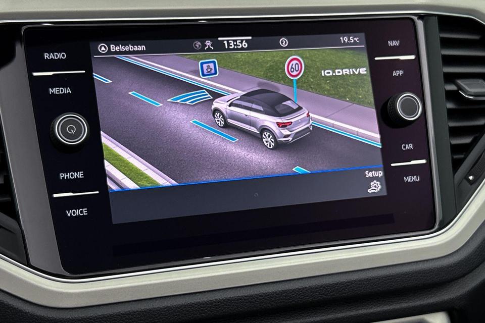 Deze Volkswagen biedt u niet alleen comfort en rijplezier, maar ook veiligheid. Actieve veiligheidssystemen houden voor u de weg in de gaten en reageren op onvoorziene situaties voordat u dat kunt. Deze Volkswagen T-Roc Cabrio is ook behulpzaam als het gaat om een rechte koers. Het Lane-keeping systeem signaleert en corrigeert als u onbedoeld de rijstrooklijnen dreigt te overschrijden. Deze Volkswagen T-Roc Cabrio blijft altijd alert. Zo wordt gebruik gemaakt van forward collision warning. Bij het mogelijke risico op een aanrijding met een voertuig voor u, slaat het systeem alarm. Verder is deze auto uitgerust met hill hold functie, autonoom remsysteem en bandenspanningcontrolesysteem.