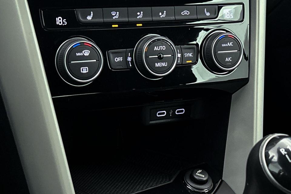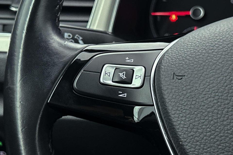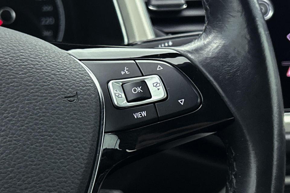 De speciale app verbindt met Connected Services, die de status van vitale functies bijhoudt en waarschuwt als u bijvoorbeeld moet tanken, de bandenspanning moet controleren of olie moet bijvullen. Laat u onderweg niet afleiden, de bediening van het audiosysteem gaat met knoppen op het stuur. Natuurlijk is de audio-installatie voorzien van dab-ontvangst. Het spreekt voor zich dat een auto als deze ook van automatische airconditioning is voorzien. Parkeersensoren zijn een handig hulpmiddel om parkeerschades te voorkomen. Achter het stuur van deze Volkswagen bent u niet alleen. De auto kijkt als het ware met u mee tijdens de rit. De regensensor schakelt de ruitenwissers in als het nodig is en de automatisch inschakelbare verlichting doet de lichten voor u aan. U bent in deze Volkswagen ook voorzien van automatisch dimmende binnenspiegel, lederen stuur, isofix-aansluiting, centrale deurvergrendeling met afstandsbediening, boordcomputer en lederen versnellingspook.