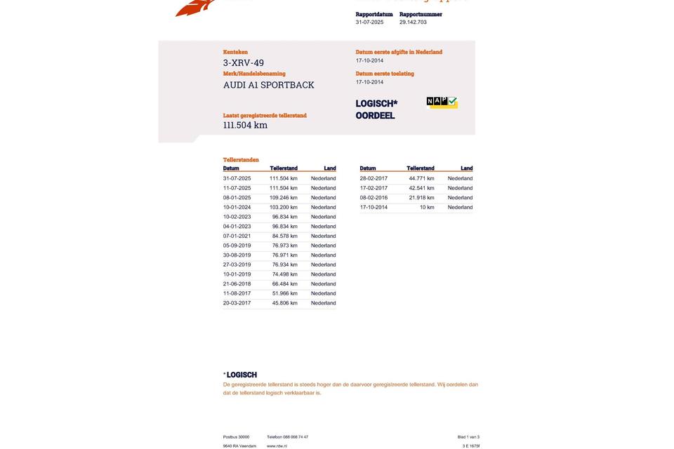 Huidige stand 111.504km
