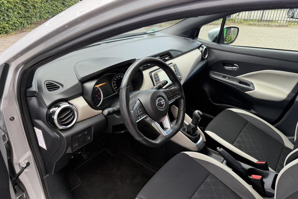 Onder alle omstandigheden perfect zicht op wat zich achter de auto afspeelt: de achteruitrijcamera zorgt ervoor! Met de routebegeleiding van het navigatiesysteem kunt u zich volledig op het verkeer concentreren. Ook over uw schouder ziet u onderweg niet alles wat er aan de achterzijde gebeurt. Daarom heeft deze Nissan Micra een achteropkomend verkeer waarschuwing. Ook lekker handig is de audiobediening op het stuur. Geniet van een ruime selectie digitale radiostations met de DAB-ontvanger. Ook is de Nissan uitgerust met: cruise control, airconditioning, lederen stuur, isofix-aansluiting, usb-aansluiting en aux ingang en centrale deurvergrendeling met afstandsbediening.