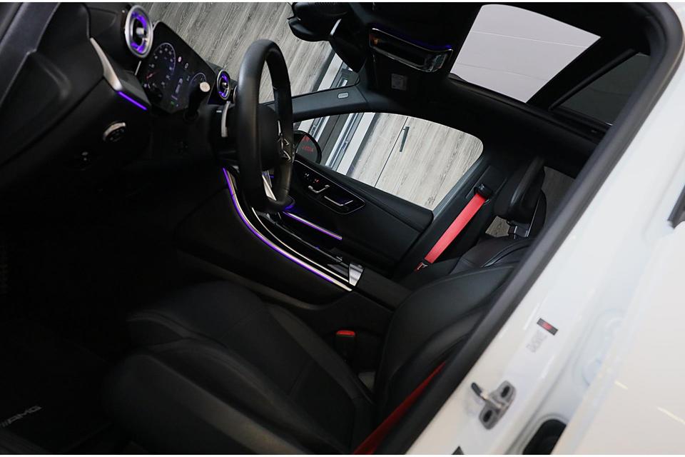 Half werk zul je bij geen enkele Mercedes tegenkomen. 'The best or nothing', inderdaad. Houdt u van een sportieve, dynamische uitstraling? Dan komt de AMG Line Exterieur als geroepen. Met een viercilinder motor en een automatische transmissie beschikt deze Mercedes-Benz over uitstekende prestaties. 4x4, 4WD... Deze auto staat maximaal stevig op de banden dankzij de vierwielaandrijving. Misschien valt u voor het lederen interieur. Maar wat een licht van binnen ook, dankzij het elektrisch bediende glazen panorama dak; en niet te vergeten het grote gemak van een elektrisch bedienbare achterklep. De verwarmbare voorstoelen zijn voorzien van een massagefunctie, een weldaad voor rug en schouders in elk seizoen. Dankzij de elektrische stoelbediening is het gemakkelijk om de optimale zitpositie te vinden. Volle auto of alleen op pad? Dankzij de luchtvering is elke rit even gelijkmatig. En u en uw passagiers genieten extra van de ergonomische comfortstoelen. Een handige en comfortabele voorziening van deze auto is het elektrisch bedienbare cabriodak. Tot de uitrusting behoren ook verwarmd stuurwiel, LED koplampen, AMG Line Exterieur, warmtewerend glas, zwarte hemelbekleding en neerklapbare achterbank.