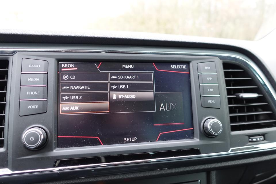Nooit meer parkeerschade dankzij de achteruitrijcamera. Veilig en comfortabel rijden wordt nog eens versterkt door Connected Services, zodat u diverse vitale functies van de auto altijd kunt checken in de app. Zuinig, veilig en ontspannen op pad: dat kan dankzij het aanwezige full map navigatiesysteem. Tot de standaard uitrusting van deze auto hoort ook automatische airconditioning. Gemak en veiligheid gaan prachtig samen. Bijvoorbeeld door de audiobediening op het stuur. De uitrusting van deze SEAT is met DAB ontvangst, regensensor, cruise control, buitentemperatuurmeter, automatisch dimmende binnenspiegel en lederen stuur behoorlijk compleet.
