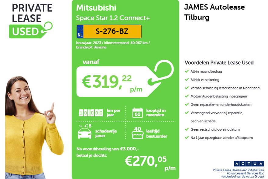Mitsubishi Space Star 1.2 Connect+ PRIVATE LEASE vanaf € 270, - pm*