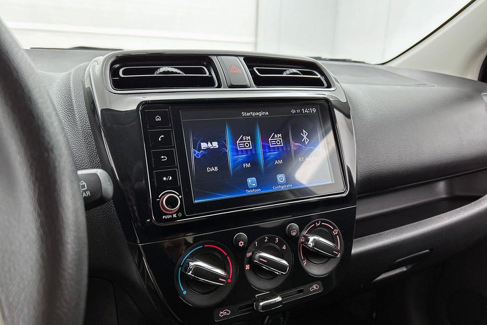 Onderweg geniet u van de kwaliteit van het audio-installatiesysteem met dab-ontvangst. De bediening is gemakkelijk via knoppen op het stuur. Omdat u nu eenmaal niet overal ogen heeft, is deze Mitsubishi Space Star voorzien van een achteropkomend verkeer waarschuwing die registreert wanneer de afstand tot uw achterligger te krap is. De elektronische systemen in deze Mitsubishi helpen u actief om comfortabeler te rijden. Een automatisch inschakelbare verlichting en een regensensor houden de omstandigheden onderweg in de gaten. En natuurlijk is er ook gedacht aan airconditioning. Wat u ook in deze auto kunt vinden zijn buitentemperatuurmeter, centrale deurvergrendeling met afstandsbediening, bagage afdekhoes, boordcomputer en verstelbaar stuur.