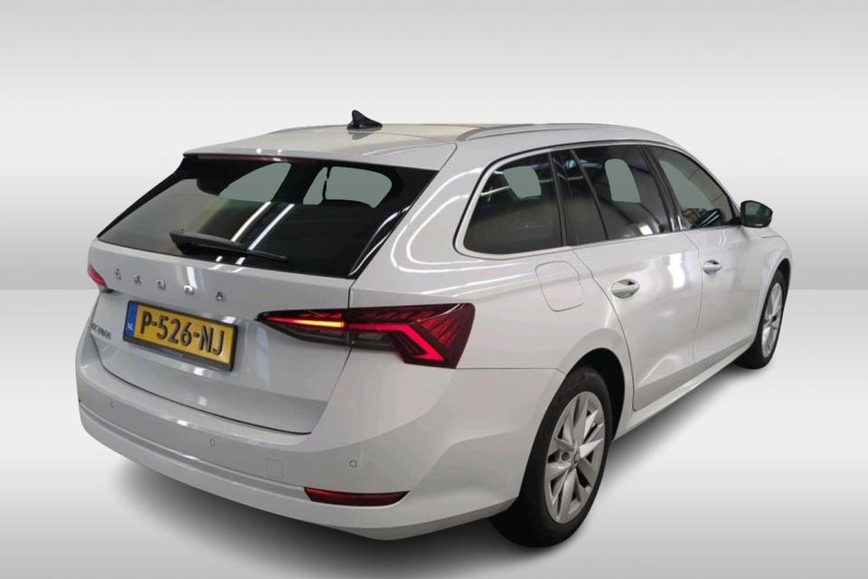 Zeer complete ŠKODA Octavia Combi 1.0 TSI Business Edition Plus in de elegante kleur Moon White Metallic. Deze origineel Nederlands geleverde Octavia combineert comfort, moderne technologie en zuinig rijden met de ruimte die je van een Combi verwacht.