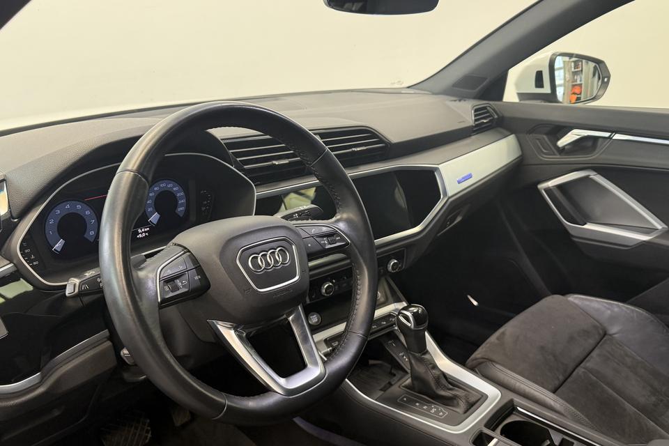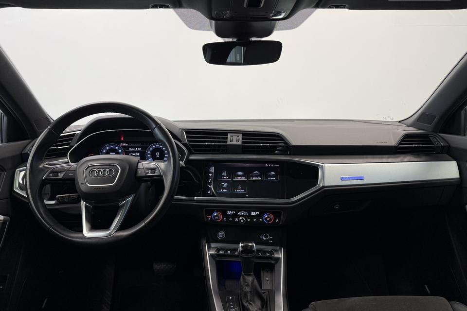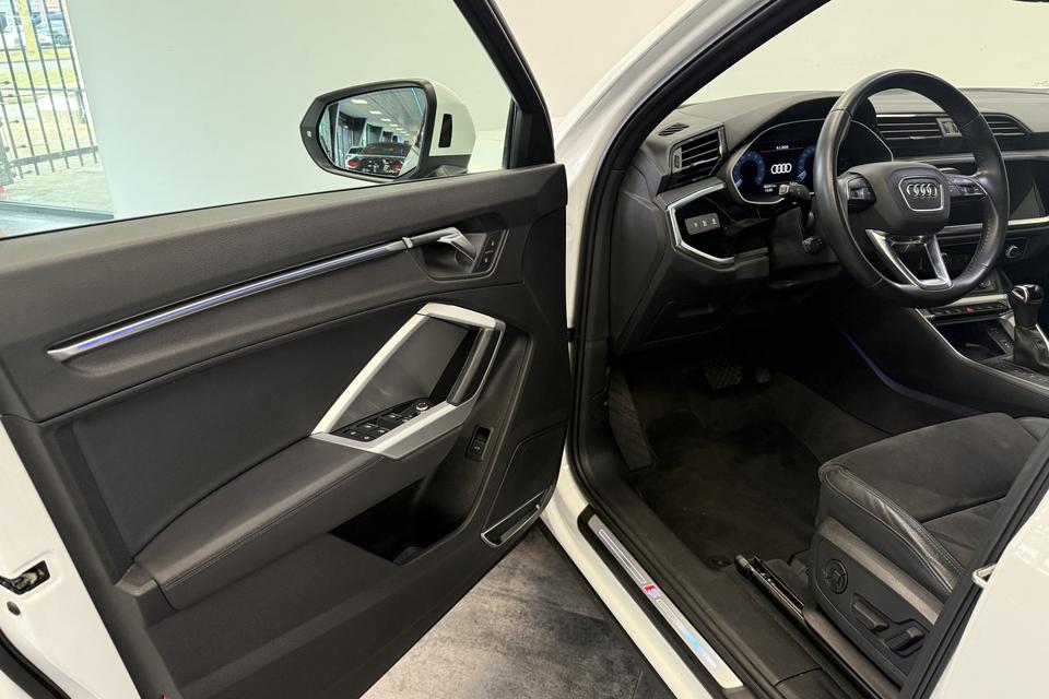 Onderhoudsboekjes: DigitaalAlle technologie in de Audi Q3 Sportback is er op gericht om uw rit veilig en gemakkelijk te laten verlopen. Dit mooie exemplaar uit 2020 heeft 83251 kilometer op de teller staan. Een aantrekkelijke en fraaie optie is de expressieve S-Line styling. Hij heeft een benzinemotor en een automatische transmissie. Mooi om te zien en heerlijk om in te zitten zijn de sportstoelen, die u onderweg optimale ondersteuning geven. Dat noemen ze nou een ruimtelijk effect: het elektrisch bediende glazen panoramadak. De achterklep opent automatisch met een druk op de knop. Handig als u met volle handen staat. Natuurlijk behoren 19 inch lichtmetalen velgen, LED koplampen, halflederen bekleding, warmtewerend glas, in delen neerklapbare achterbank en LED-achterlichten ook tot de uitrusting van deze complete auto.