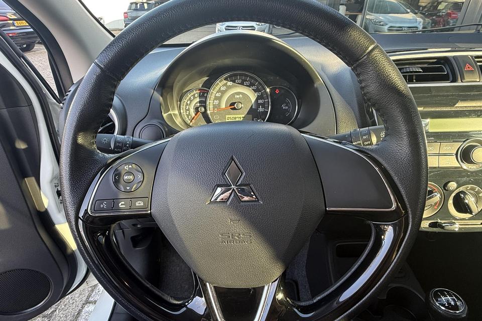Laat u onderweg niet afleiden, de bediening van het audiosysteem gaat met knoppen op het stuur. De kans op een kop-staart botsing wordt sterk gereduceerd door het systeem van achteropkomend verkeer waarschuwing. Natuurlijk is een complete auto als deze ook voorzien van sensoren die de omgeving in de gaten houden. Deze Mitsubishi heeft niet alleen een automatisch inschakelbare verlichting aan boord, maar ook een regensensor. Het maakt niet uit hoe warm het buiten is, want met de airconditioning bepaalt u zelf de binnentemperatuur. U bent in deze Mitsubishi ook voorzien van lederen stuur en versnellingspook en centrale deurvergrendeling met afstandsbediening.