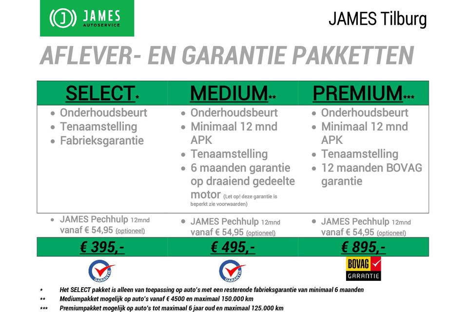 JAMES Autoservice Tilburg is al meer dan 35 jaar een begrip in Tilburg en omgeving. Bezoek onze website www.jamestilburg.nl voor meer informatie over ons bedrijf, ons actuele aanbod, aanvullende foto’s en een 360° video van onze auto’s.
