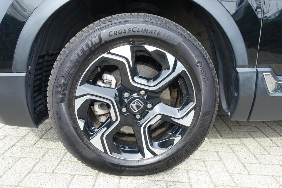 De nieuwste veiligheidssystemen komen in deze Honda CR-V samen. In het instrumentarium ziet u tijdens de rit ook de belangrijkste verkeersborden aangegeven, die de auto automatisch voor u leest. De forward collision warning reduceert het gevaar van een botsing met een voorligger significant. Het veiligheidssysteem lane assist waarschuwt als u per ongeluk buiten uw rijbaan terechtkomt. Met voorzieningen als elektronische handrem met hill hold functie, rem-assistent en bandenspanningcontrolesysteem, bent u altijd veilig onderweg.