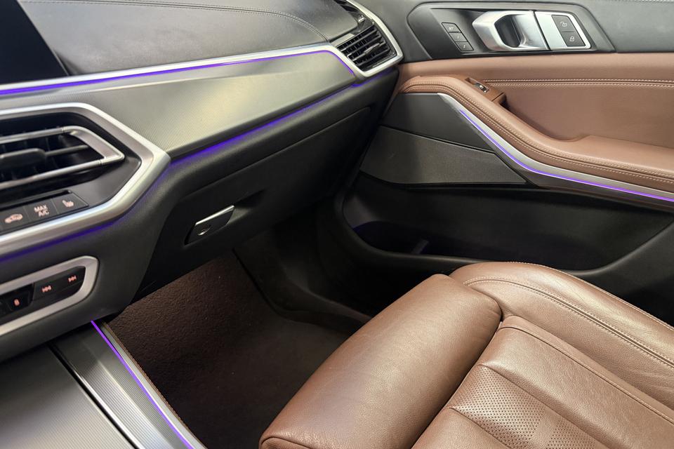 Hij zorgt voor een ontspannen rijervaring, deze BMW X5. Het is een auto uit 2020. Deze goed onderhouden auto is van de eerste eigenaar. De aandrijving wordt verzorgd door een zescilinder benzinemotor en een automatische transmissie. Deze BMW X5 is voorzien van luchtvering, en dat is te merken aan de rimpelloze wegligging. De auto is voorzien van een mooie en comfortabele lederen bekleding. Ga samen met uw bijrijder lekker zitten in de verwarmbare voorstoelen. Goeie looks? Jazeker! Maar de sportstoelen zorgen ook voor een goed gesteunde en comfortabele zit. Een handige voorziening op deze auto is de elektrische achterklep die u op afstand kunt openen. Bij de zeer complete uitrusting van deze auto behoren ook 20 inch lichtmetalen velgen, LED koplampen, BMW M-sportpakket, adaptief dempingsysteem, in delen neerklapbare achterbank en LED-achterlichten.